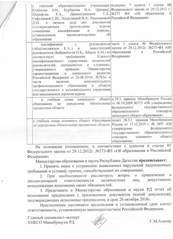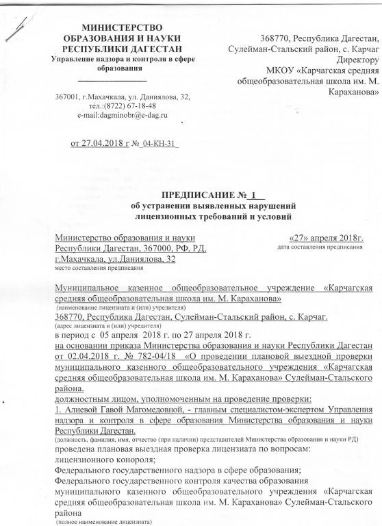Предписания органов, осуществляющих государственный контроль (надзор) в сфере образования, отчеты об исполнении таких предписаний (при наличии)
