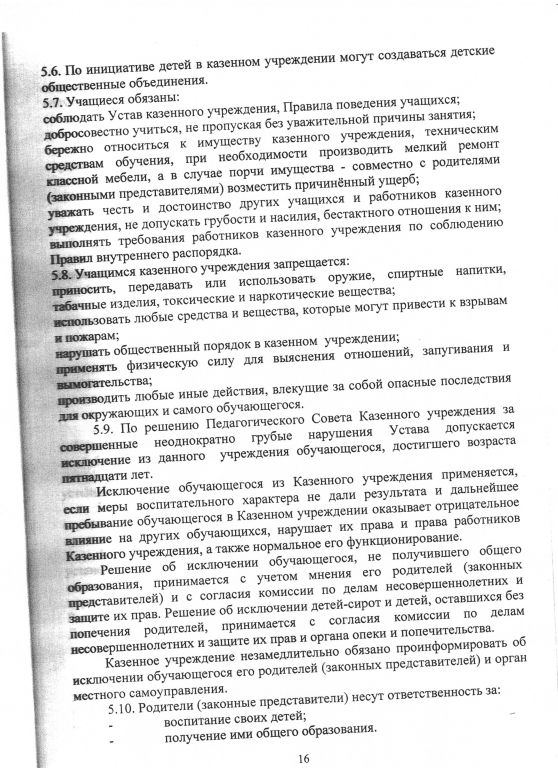 Правила внутреннего распорядка обучающихся (воспитанников)